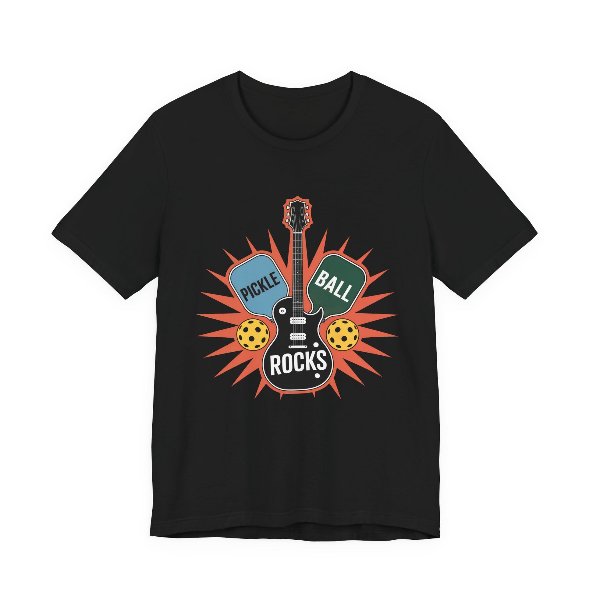 Pickleball Rocks Guitar Shirt - Retro Music Rock and Roll Design
