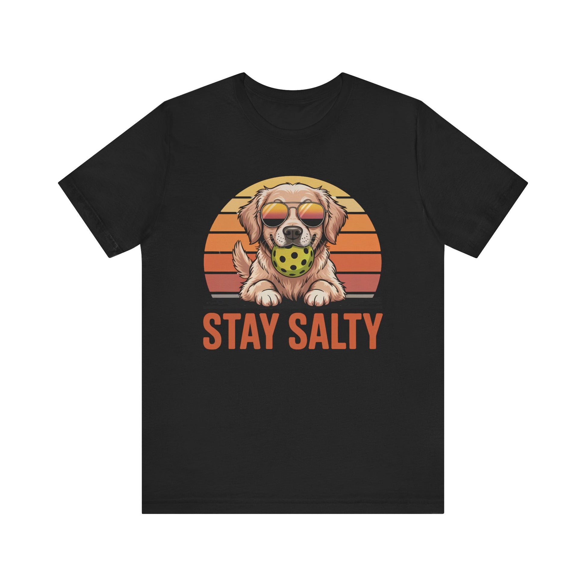 Stay Salty Dog Pickleball Shirt - Golden Retriever Beach Design