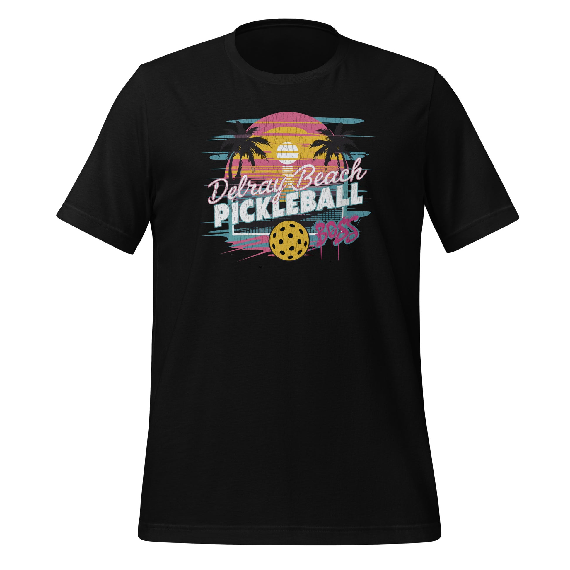 Rule the courts with a throwback flair in our Delray Beach Pickleball Boss Tee. The vivid retro design, complete with a nostalgic sunset and palm trees, celebrates the fun and competitive spirit of Delray Beach's pickleball scene. It's the perfect blend of sport and vintage for those who lead the game with style.